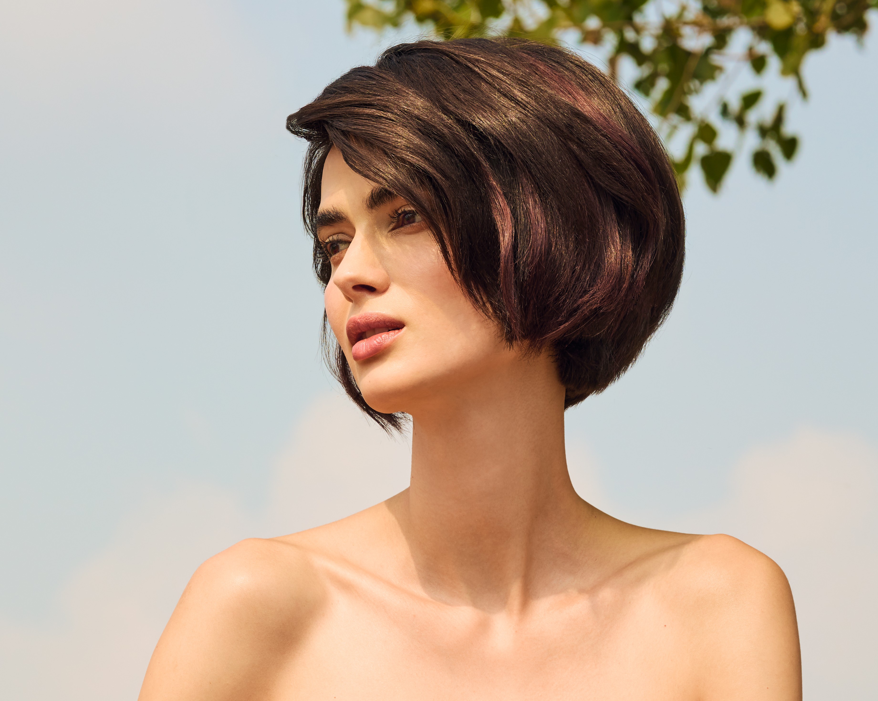 Linee pulite e piene riscoprono texture inaspettate grazie a una scalatura interna a sorpresa che scolpisce le ciocche, donando movimento: è il short bob, uno dei tagli più iconici di questa stagione dominata dall’essenzialità. Le lunghezze non raggiungono il mento e lasciano interamente coperto il collo.