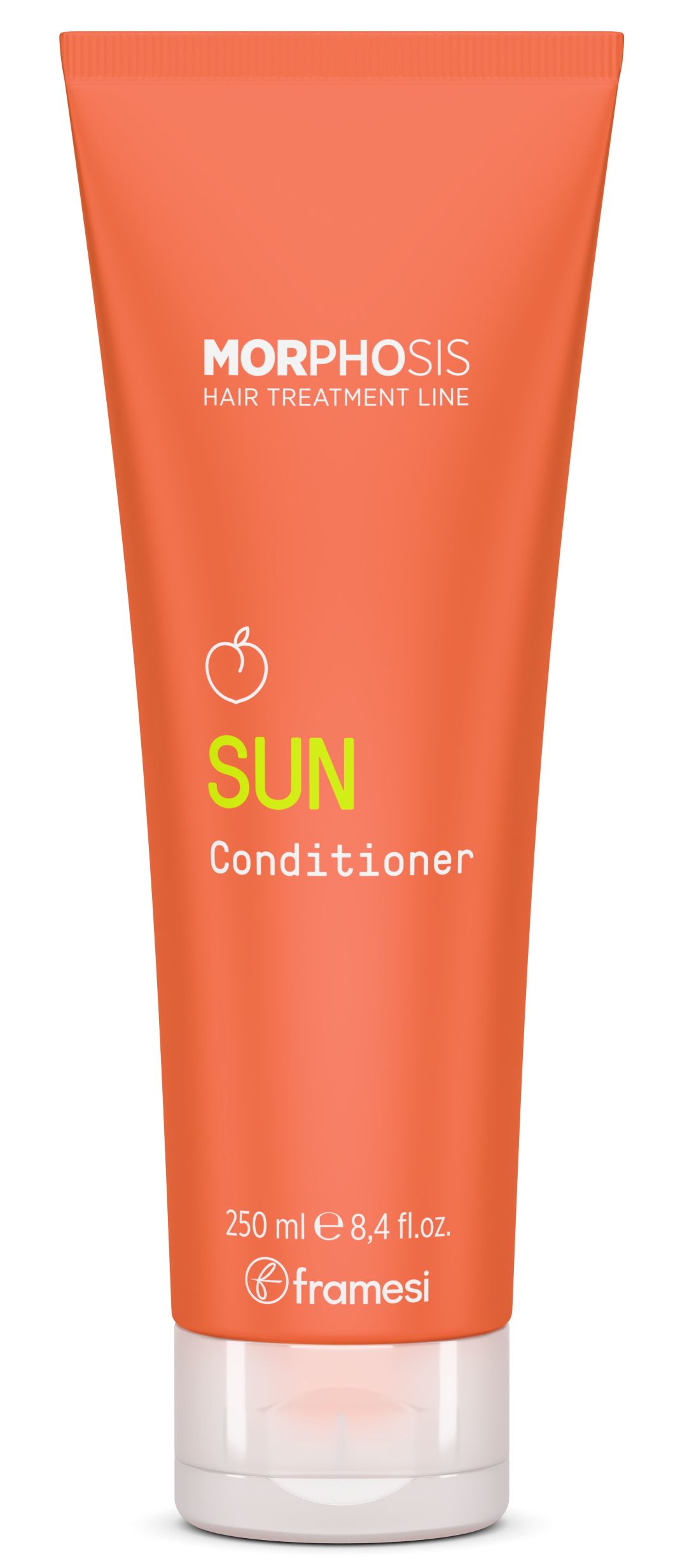Sun Conditioner di Framesi è una formula con risciacquo che restituisce idratazione e morbidezza ai capelli stressati dal sole e dai bagni in mare e piscina. Arricchito con estratto biologico di pesca, burro di karité e un fitocomplesso vegetale, protegge dai raggi UV, rende i capelli pettinabili, morbidi e vitali. Senza appesantire, districa e rigenera lo stelo.